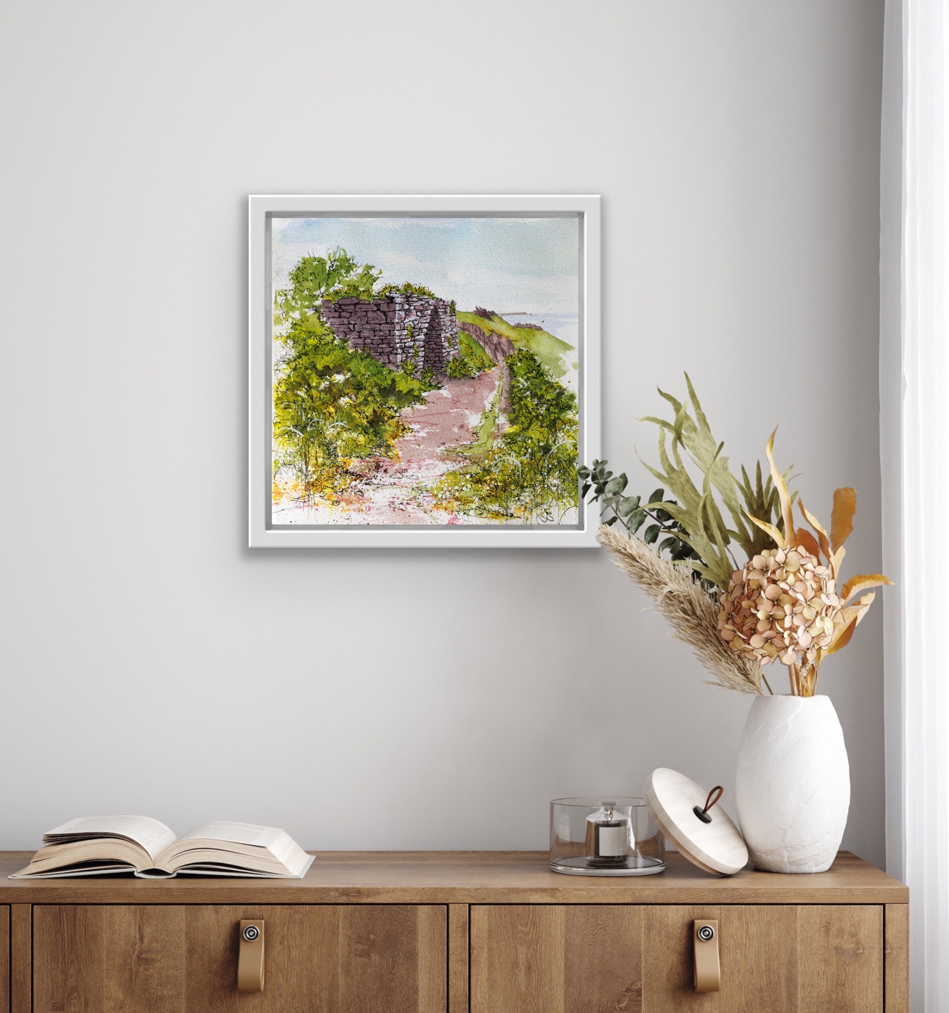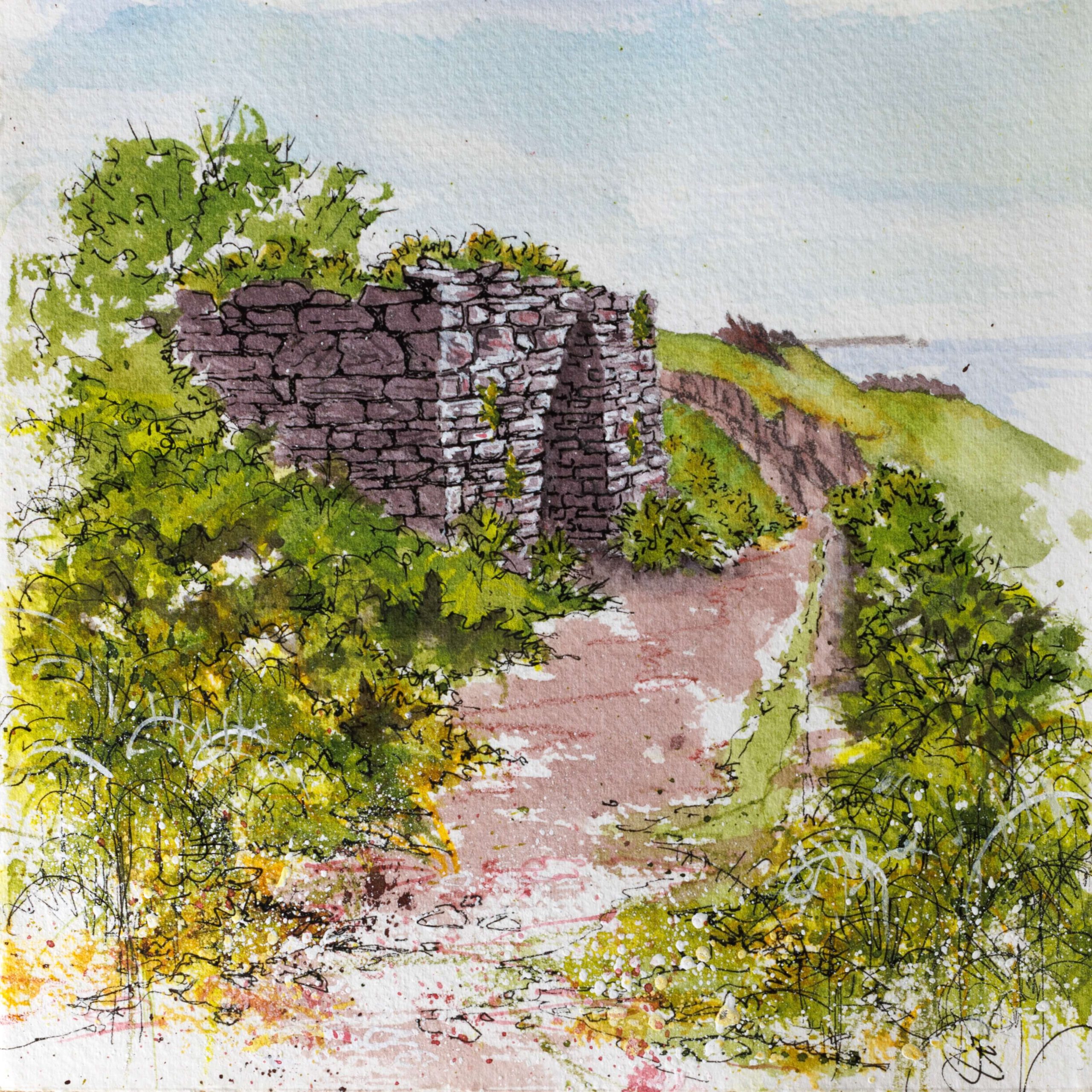 Whilst I wanted to express the wildness and raw beauty of this amazing place, I also wanted people to be able to recognise aspects of the landscape: to have memories triggered and recalled by the paintings they were looking at. By combining both abstract marks and textures with figurative features I hope I have been able to convey the  magic of Skokholm Island, and the very special place it holds in my heart.
